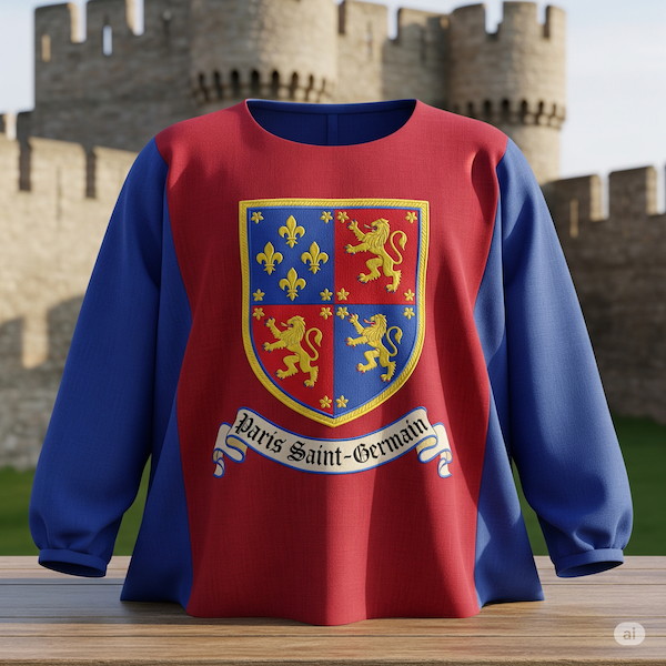 Puisque l’intelligence artificielle est à ce point développée qu’elle est capable de tout imaginer, nous avons demandé à l’outil de Google, Gemini, de l’exprimer pour nous. En prenant pour consigne de créer, club par club, les maillots des joueurs tels qu’ils auraient pu être produits au temps du Moyen Âge. Le résultat est à découvrir dans le diaporama d’images ci-dessous.