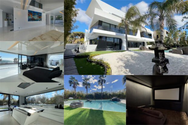 Édifiée il y a une décennie, cette villa se distingue par son esthétique résolument moderniste. L’architecte a conçu un ensemble aux lignes courbes rappelant l’élégance d’un yacht de prestige. Les baies vitrées teintées s’intègrent harmonieusement dans une structure blanche aux formes fluides, créant un dialogue saisissant entre l’habitat et l’horizon marin.