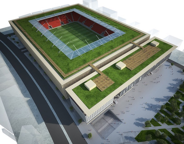 Enfin, par leur architecture. Tout rond, avec des vagues ou de la pelouse sur les toits, il y a de toutes les formes, tailles ou matériaux. Mais peut-être aucun d’aussi étonnant que le Stadionul Steaua nouvelle version, en Roumanie, dans le quartier de Ghencea, à Bucarest. Le Steaua, futur club résident évoluera dans un nouvel écrin tout en étoile. Qui devrait être canon de nuit, comme on peut le découvrir dans la galerie d’images ci-dessus.