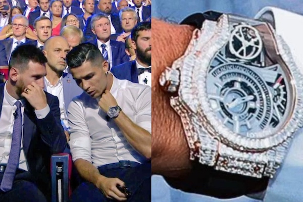 Sinon, et toujours à Monaco dans le cadre de la cérémonie du tirage au sort de cette Ligue des champions 2019-20, Ronaldo a partagé l’affiche avec Lionel Messi, en grande discussion avec son rival argentin. Et sur toutes les images qui ont circulé dans le monde, est visible la montre Hublot MP-09 Tourbillon Bi-Axis, « customisée » de diamants et autres pierre précieuses qui la rendent encore plus unique et chère qu’elle ne l’est de base. Comme les autres précédemment cités, elle approcherait les 1,5 millions d’euros.
