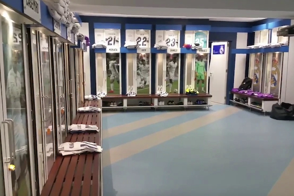 Clasico 2019 en Espagne, acte II. Comme mercredi en Coupe du Roi, c’est le Real Madrid qui reçoit le FC Barcelone, sur sa pelouse du stade Santiago-Benabeu. Dans leur vestiaire pour les joueurs du collectif merengue, ils ont leurs habitudes dans l’espace qui leur est entièrement dédié. Entre le vestiaire de l’équipe qui reçoit et celle qui « visite », il n’y a pas vraiment de différence sur les prestations : des bancs pour s’assoir, des casiers pour ranger les affaires et des douches pour l’après-match.