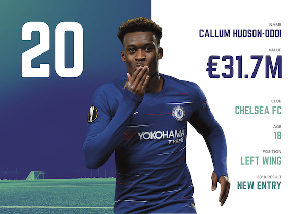 Les 20 U21 les plus chers du moment : 20. Callum Hudson-Odoi  = 31,7 M€