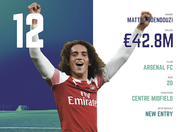 La France est le deuxième pays le plus représenté, derrière l’Angleterre, avec quatre joueurs dans la liste, contre cinq l’année dernière. Comme Kylian Mbappé, Houssem Aouar figurait déjà dans la précédente étude. Le Lyonnais a gagné 5 places, et sa valeur estimée a augmenté d’environ 7 M€. Ibrahima Konaté fait son entrée dans le classement, tout comme Matteo Guendouzi. Le joueur d’Arsenal fait partie des six pensionnaires de Premier League dans ce top 20, ce qui en fait le championnat le mieux représenté. La liste complète est disponible ci-dessous.