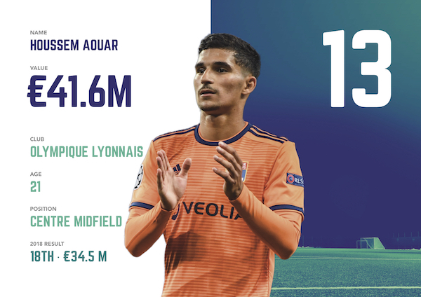 La France est le deuxième pays le plus représenté, derrière l’Angleterre, avec quatre joueurs dans la liste, contre cinq l’année dernière. Comme Kylian Mbappé, Houssem Aouar figurait déjà dans la précédente étude. Le Lyonnais a gagné 5 places, et sa valeur estimée a augmenté d’environ 7 M€. Ibrahima Konaté fait son entrée dans le classement, tout comme Matteo Guendouzi. Le joueur d’Arsenal fait partie des six pensionnaires de Premier League dans ce top 20, ce qui en fait le championnat le mieux représenté. La liste complète est disponible ci-dessous.