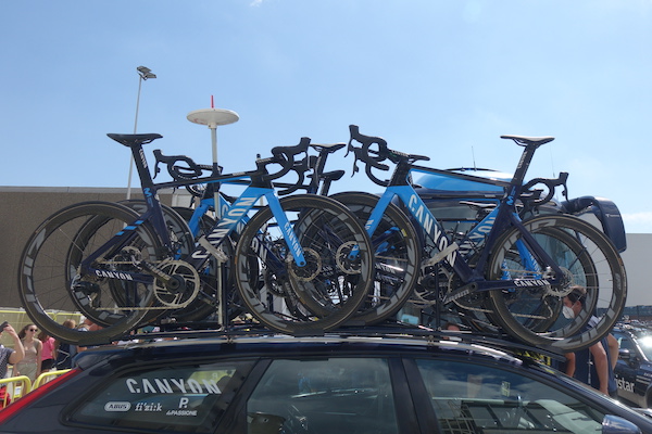 Les vingt-deux formations de la Grande Boucle ont toutes plusieurs versions des vélos, adaptées aux profil des étapes (de plaines, de montagnes, ou en contre-la-montre), à des prix qui diffèrent selon la version, et qu’elles colorent traditionnellement en fonction des sponsors. Parfois, comme chez les FDJ-Groupama, garçons et filles ont la même monture ; de la marque Lapierre pour l’équipe française.