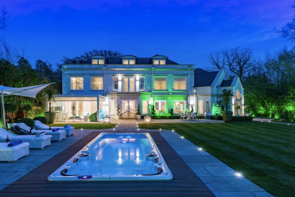 Dès le franchissement des portes électriques, le ton est donné. Une allée pavée, enjambant un ruisseau, mène à un garage double dont les dimensions pourraient accueillir une Rolls Royce Droptail. Le vestibule d’entrée en double hauteur, agrémenté d’un piano à queue automatisé, annonce le niveau de raffinement de la demeure.
