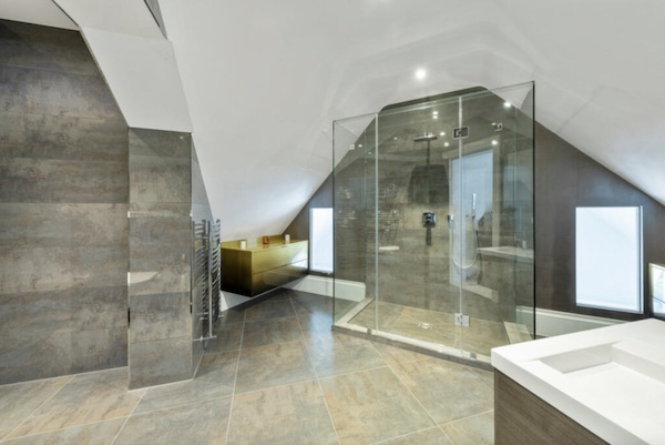 Dès le franchissement des portes électriques, le ton est donné. Une allée pavée, enjambant un ruisseau, mène à un garage double dont les dimensions pourraient accueillir une Rolls Royce Droptail. Le vestibule d’entrée en double hauteur, agrémenté d’un piano à queue automatisé, annonce le niveau de raffinement de la demeure.