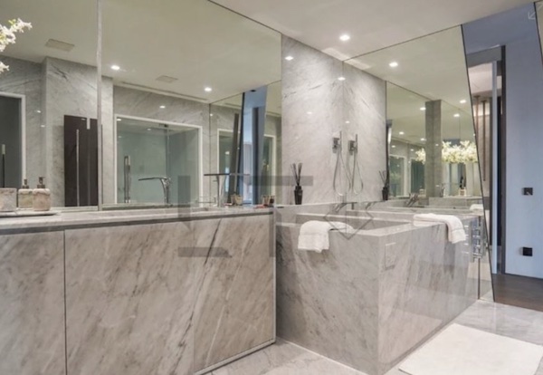 Les initiales CR7 gravées dans le marbre d’une salle de bain