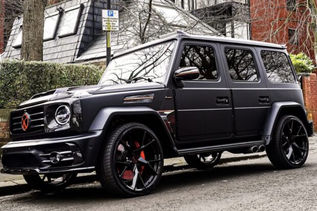 De l’Italie à l’Angleterre en passant par la France, Enzo Le Fée est parti outre-manche avec son bolide personne. Qu’est un imposant Mercedes Classe G, musclé et revisité par le préparateur Mansory. Particularité du bolide donc : il est tout noir sur la carrosserie extérieure qui trahit tout de même quelques traits de orange. Le même orange qui s’invite à l’intérieur. Orange plus noir, comme les couleurs du FC Lorient.