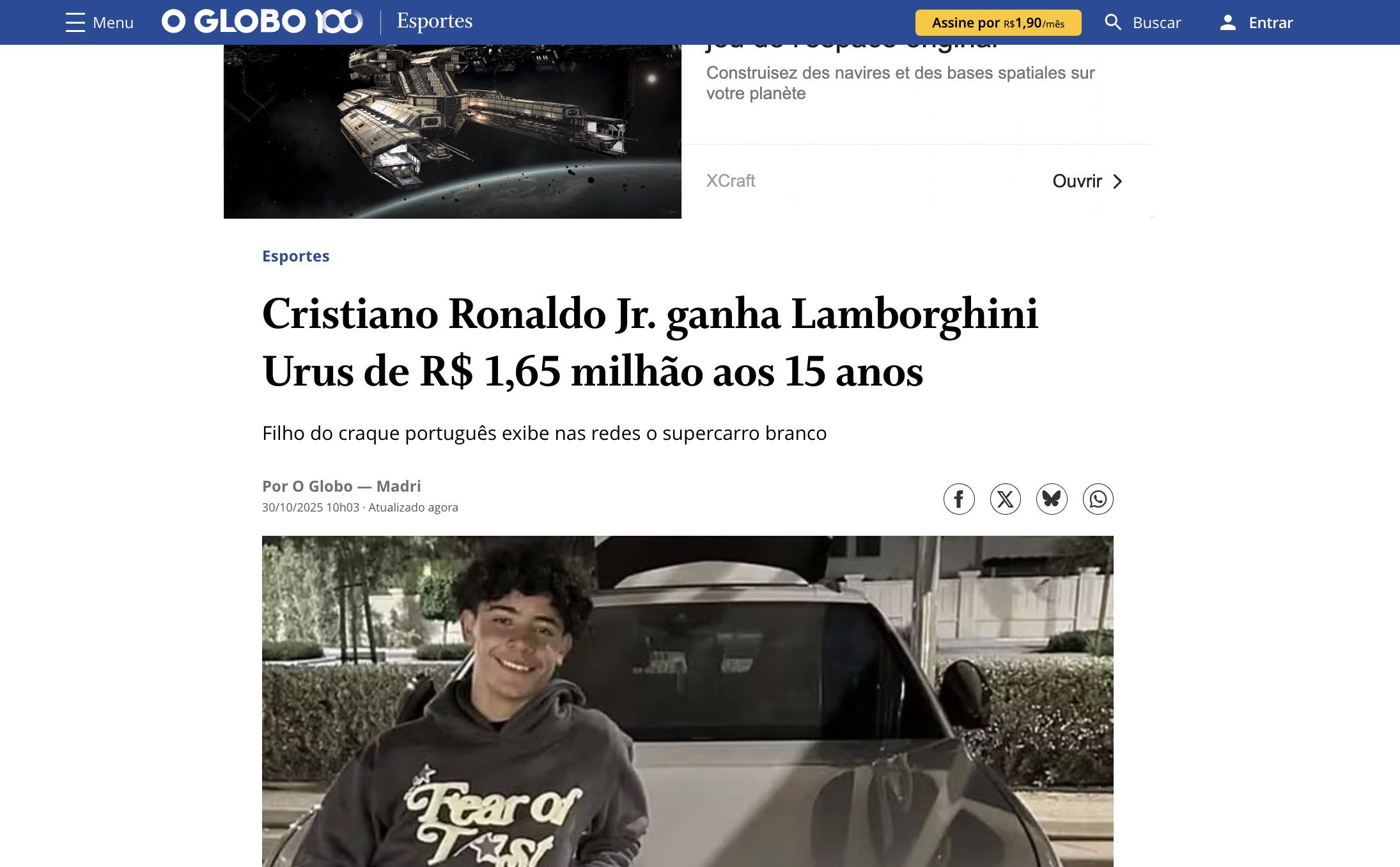 Déjà une première chose : Cristiano Jr n’a pas de présence officielle sur les réseaux sociaux. Le compte derrière la publication est d’ailleurs un peu honnête à ce sujet, quand bien même se nomme-t-il « Cristiano Junior ». Créé en ce moi d’octobre 2025, il indique clairement dans sa biographie : « Compte de fan parodique ». Mais sa publication est trompeuse car elle porte la légende « Première voiture ».