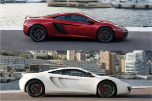 A vendre, aux enchères, deux anciennes McLaren de Lewis Hamilton (en haut) et Jenson Button. La Formule 1 et son…