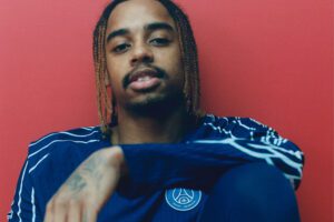 Bradley Barcola et le nouveau maillot du PSG. Le Paris Saint-Germain dévoile sa nouvelle collection "WINGS" en collaboration avec Jordan…