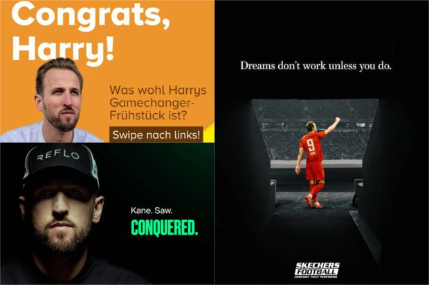 Enfin, le groupe 3Bears qui profite d’un timing parfait avec ce premier trophée. 3Bears est une marque munichoise de céréales, qui compte Harry Kane pour image depuis l’automne dernier. Le joueur s’est engagé avec elle à produire toute une gamme de céréales, tout juste révélé il y a moins d’une semaine. En plein coeur de sa promotion, la voilà donc mise plus encore sur le devant de la scène. « Nous sommes fiers de pouvoir te célébrer non seulement sur le terrain, mais aussi en tant que membre de la famille 3Bears », s’enthousiasme-t-elle après le sacre du Bayern Munich. Un titre que célèbre plus largement Allianz, dans un visuel associant à la fois le club et le joueur, parce que l’assureur est autant un commanditaire de l’équipe bavaroise (et le namer de son stade), qu’un soutien personnel de l’Anglais.