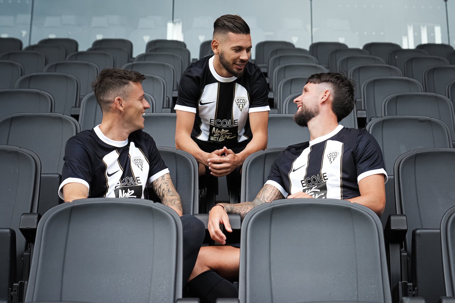 Dans un souci de responsabilité environnementale, le maillot est entièrement fabriqué en tissu 100% polyester issu de plastique recyclé. Les détails personnalisés ne manquent pas : l’inscription « A JAMAIS NOUS SERONS, FIERS D’ÊTRE AUXERROIS » figure à l’intérieur du col et sur le bas du maillot, tandis que la croix de Malte, emblème du club, est imprimée en relief au dos.