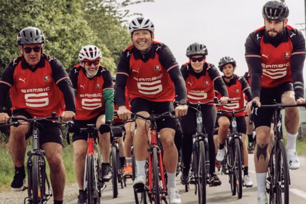 Le Stade Rennais a présenté ce vendredi son nouveau maillot domicile pour la saison 2025-2026. Fidèle à la tradition du club breton, cette nouvelle tunique conserve les emblématiques couleurs rouge et noir, tout en proposant quelques évolutions esthétiques intéressantes signées Puma. Pour le divulguer, le club rennais a opté pour une campagne de lancement originale en organisant une sortie cycliste avec des proches du club, tous vêtus de la nouvelle tenue.