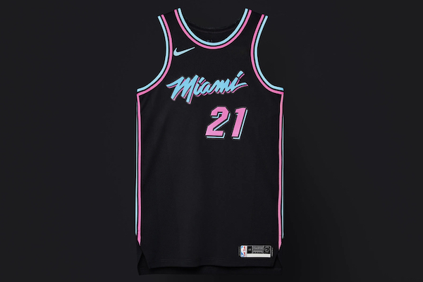 C’est un concept lancé par Nike qui connait un franc succès. Et pour cause, l’idée de décliner les maillots des franchises NBA, en un modèle plus lifestyle d’influence extérieure au sport est plutôt bonne. Voire excellente pour certaines pièces, il en est toujours de plus réussies ou tout du moins appréciées que d’autres. La première saison de la NBA City Edition a popularisé le modèle dédié à Miami. Version « Miami Vice », en blanc. En pour la collection 2019, il est de retour, à l’identique, mais en noir.