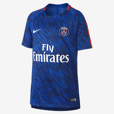 Nous l’évoquions au début du mois dernier, en ce 1er jour de l’année 2018, le voilà officiellement sorti, le nouveau maillot pre-match 2018 du PSG. Comprendre que c’est celui que les joueurs du collectif d’Unai Emery porteront à l’échauffement précédent les rencontres officielles de la deuxième moitié de la saison 2017-2018. Naturellement produite par Nike, l’équipementier officiel du club de la capitale, cette tunique surprend par son design graphique.
