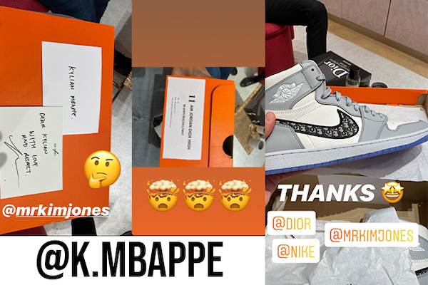 Une paire de Air Jordan x Dior reçue en exclu par Mbappé