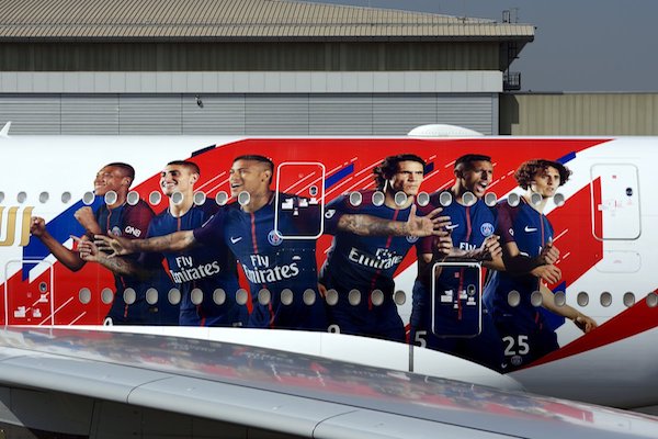 Emirates a profité des circonstances pour changer l’habillage de l’avion dédié au PSG. – @Twitter