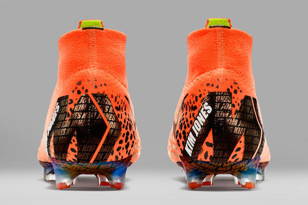 C’est un modèle très « animal », comme l’est le crack portugais sur les terrains de football. Sur la couleur orange iconique de la nouvelle gamme Mercurial de Nike, Kim Jones a posé sa patte, pour donner à la paire un côté félin. Tachetée comme le sont les guépards. Celui qui collabore d’ordinaire avec la prestigieuse maison Louis-Vuitton a pris ses racines africaines en référence (il a vécu au Kenya). Sur son travail, il explique : « Le guépard est l’animal terrestre le plus rapide, c’est naturellement que je l’ai choisi comme inspiration ».