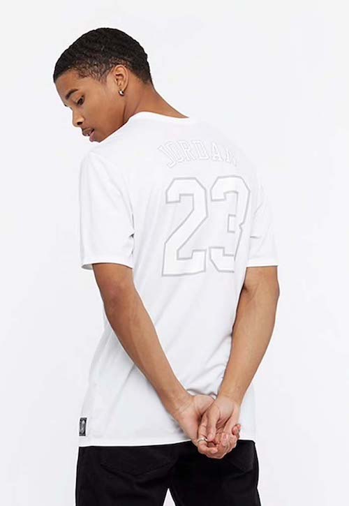 Ici pas de maillots, car il ne peut s’en changer en cours de saison, mais un haut « replica » qui s’en inspire, avec la bande noire au centre et à la verticale. Et dans le dos le numéro 23 et le nom Jordan de la légende du basket, Michael Jordan, aux commandes de la division. Toute la collection capsule est sur un même fond de blanc accompagné de noir. Elle se décline en tee-shirts à manches courtes ou longues, de deux sweats à capuche, l’un zippé et l’autre non, d’un bas, d’une veste, une casquette…