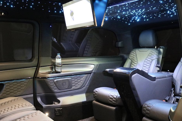 L’originalité n’est pas extérieure. En noire, la carrosserie est discrète mais plutôt banale. A l’intérieur en revanche, c’est une autre atmosphère. Tel que nous le montrent les images du diaporama ci-dessus, qui sont celles d’un modèle type comme celui réalisé pour Harry Kane (ou plus tôt dans l’année, à l’attention du milieu de Manchester City, Fabian Delph), l’engin est un night club sur roues, à l’intérieur duquel, il fait bon se prélasser.