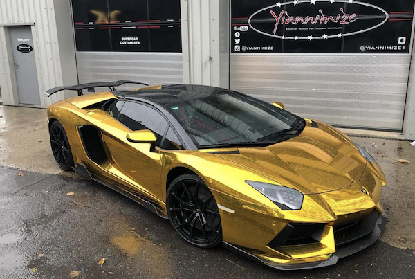 La dernière excentricité de Pierre-Emerick Aubameyang est cette Aventador façon lingot d’or. – Images @yiannimize
