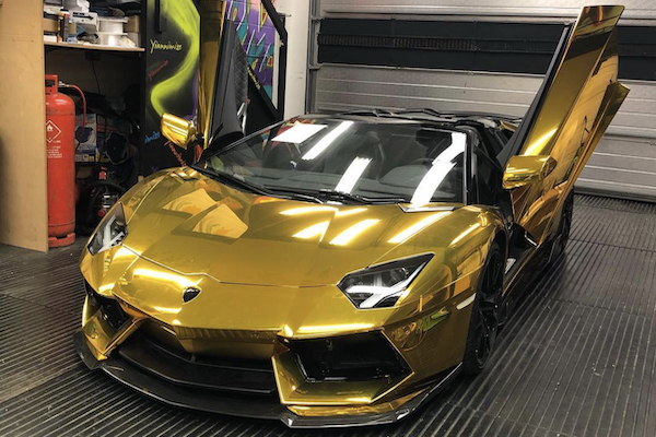 La dernière excentricité de Pierre-Emerick Aubameyang est cette Aventador façon lingot d’or. – Images @yiannimize