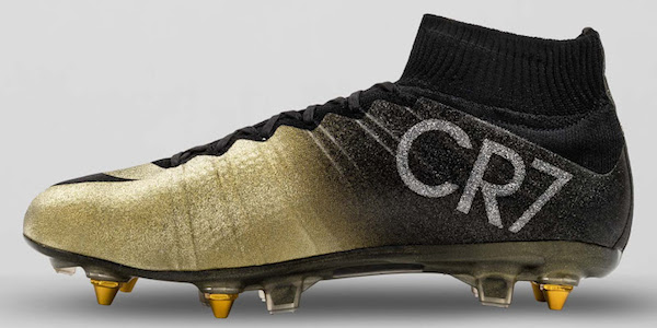 Et pas n’importe quelles chaussures puisque ce modèle Mercurial Superfly Cristiano Ronaldo de couleur noire et or a pour particularité de compter des micro-diamants ajoutés à la main ainsi que des crampons en fine péllicule d’or véritable.