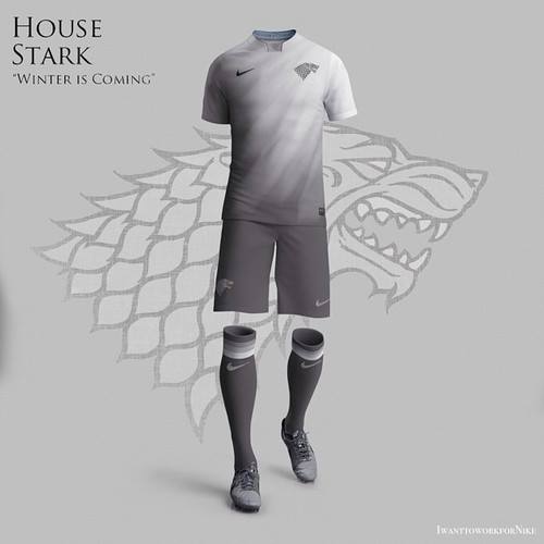 Voilà une excellente façon d’attirer l’oeil de l’employeur convoité. Elle est Espagnole, designer de mode, fan de football et a pour ambition de rejoindre les équipes de l’équipementier américain Nike. C’est ainsi qu’elle se présente sur sa page Facebook et pour achever de convaincre son futur (?) employeur, elle a décidé de décliner les maillots des équipes Nike au Mondial 2014 en les adaptants à la série TV qui cartonne : Game of Thrones.