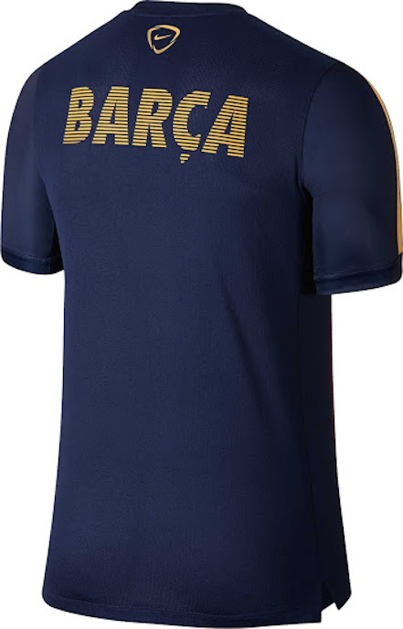 Voilà donc ce que seront les tenues du Barça pour s’échauffer avant les matchs de championnat de Liga, de coupe d’Espagne ou de Ligue des champions. La première est fidèle aux couleurs historiques du Barça, le blaugrana (bleu et grenat) avec un peu de jaune, en bande de l’épaule jusqu’au manches ou pour accompagner les logos du club et de l’équipementier.