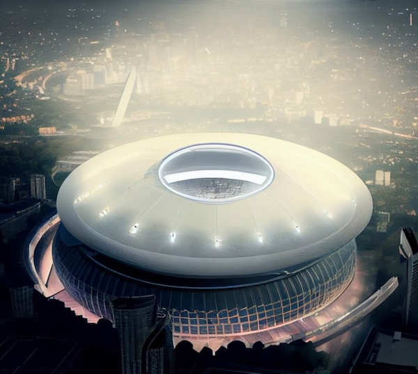 L’un des principaux sujets des grands clubs européens est leur stade. Du FC Barcelone, au Real Madrid, en passant par le Paris Saint Germain, tous ou presque veulent rénover le leur. L’architecte Pouria Babakhani a, quant à lui, imaginé des enceintes futuristes, qui pourraient sortir d’un film de science-fiction. Il a eu recours à Midjourney, comme le nom du programme développé par un laboratoire, qui produit des images à partir de descriptions textuelles. Parmi les designs présentés sur DesignBoom, un stade en forme de ballon de football, ou encore, en forme ovale avec un toit ouvert.