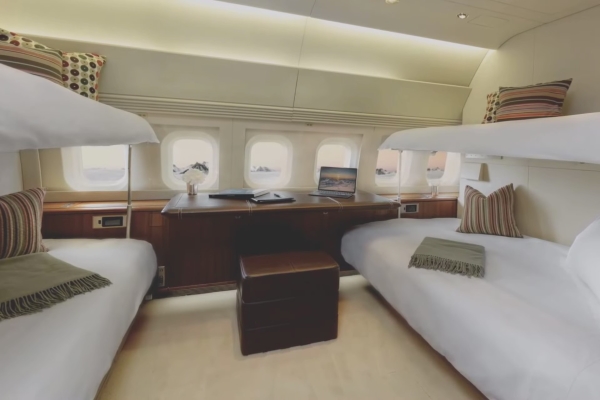 Le jet est propulsé par des moteurs Pratt & Whitney PW4060-3, et sa vitesse de croisière est de 850 km/h. C’est peut-être celui-ci que Roman Abramovich a utilisé pour se faire livrer des sushis. Il est intéressant de savoir qu’initialement, ce Boeing ne devait pas être la propriété de l’oligarque russe. Il avait été construit pour Hawaiian Airlines, et devait être enregistré sous le numéro N595HA, en été 2003. Cependant, la compagnie aérienne a annulé sa commande, ce qui a permis au milliardaire de l’acheter, puis de le modifier à sa guise.