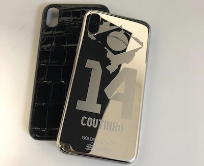 La société s’appelle Golden Concept, elle est basée à Malmö, en Suède, la ville d’où est originaire un certain Zlatan Ibrahimovic. Pour autant que l’on sache, elle ne compte pas l’ancien parisien dans son carnet de clientèle mais un autre actuel du PSG, en la personne de Neymar. Elle a également collaboré anciennement avec Cristiano Ronaldo. Pour Philippe Coutinho, c’est un modèle en argent, sur la base de la version X de la très populaire marque californienne à la pomme. Son message de personnalisation est plutôt conventionnel, il a fait graver le 14, un numéro de maillot anciennement porté par Cruyff, Thierry Henry ou Mascherano qui est désormais celui du Brésilien, au FC Barcelone.