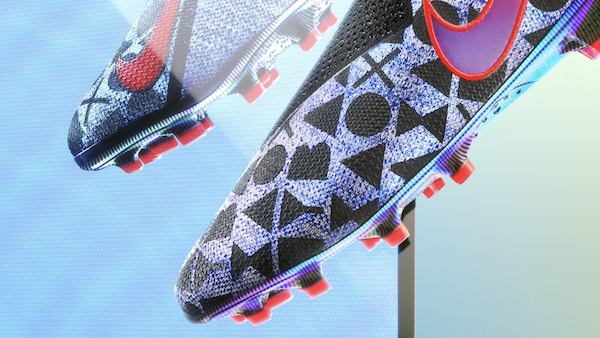 D’un modèle Phantom Vision Elite, l’esthétique est soignée et pensée pour coller à l’univers de EA Sports et de son titre phare, le jeu de foot FIFA 19. Sur la base de crois, de ronds, de triangles ou de carrés sur l’empeigne ; c’est une sorte de rappel des touches de la manette des consoles de la marque Sony, partenaire de l’éditeur canadien. De couleur d’ensemble holographique, surtout sous la semelle, ces chaussures ont le bout des crampons et la Virgule du logo de Nike en rouge.