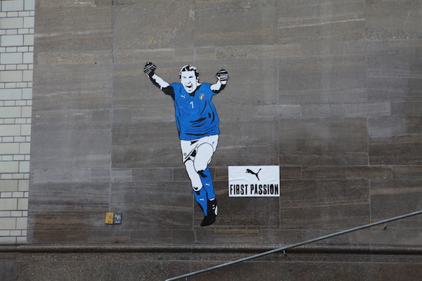 Le match, ce vendredi soir, entre l’Italie et la Macédoine donne à Puma l’occasion de révéler une première tenue. Celle que la Nazionale portera pour les rencontres à domicile. Voilà en effet, le nouveau maillot de l’Italie pour le Mondial 2018, officialisé par Puma, avec le gardien emblématique Gianluigi Buffon en ambassadeur du modèle. C’est lui qui l’a révélé sur ses épaules, dans les rues de Turin, avec une fresque murale géante de sa personne, réalisée par le collectif d’artistes Kamp Seedorf.