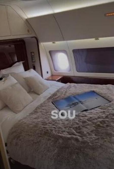 Un lit, une salle de bain et des écrans de télévision dans le jet privé de Neymar