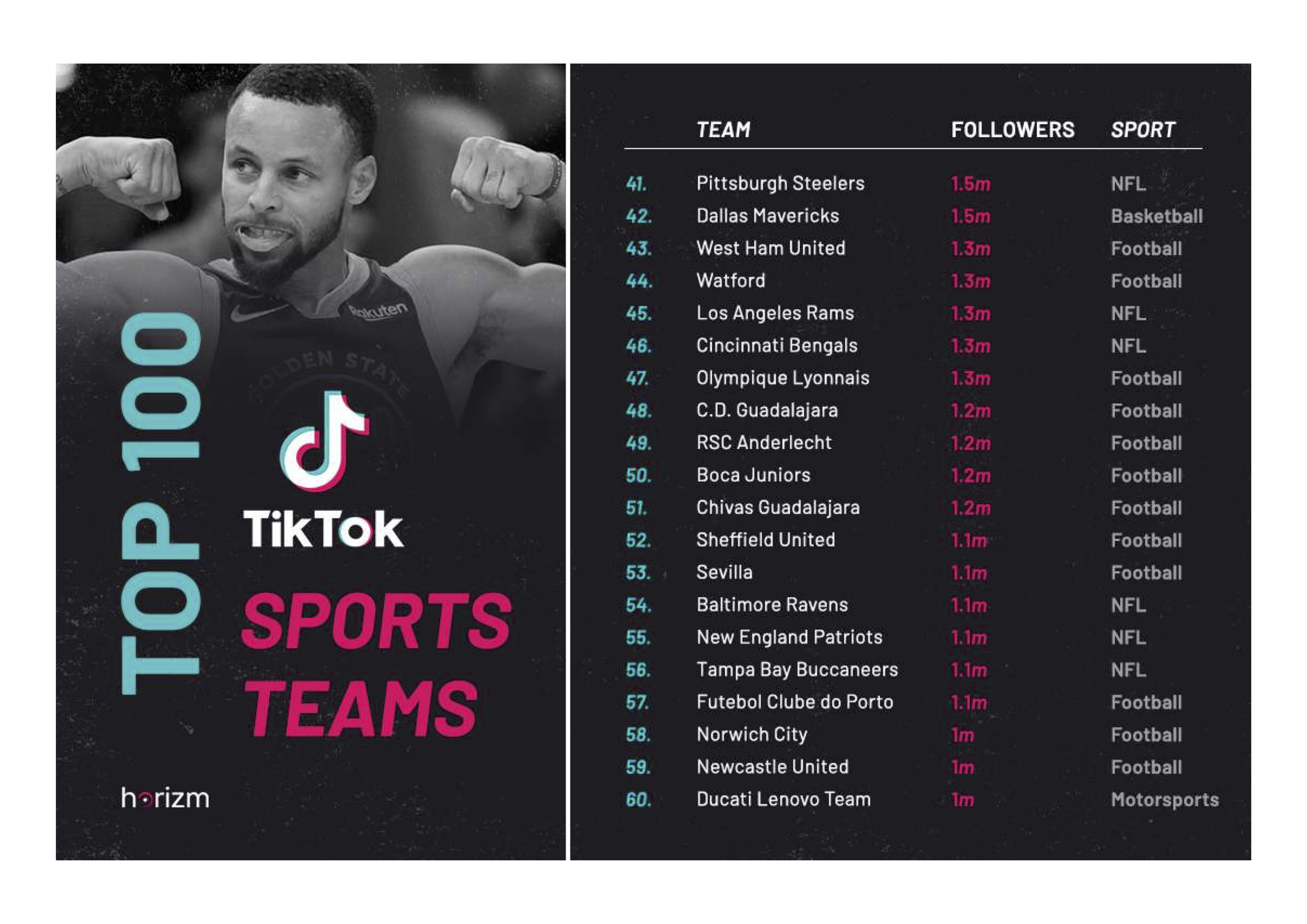 Les 100 clubs sportifs les plus populaires sur TikTok (41 à 60)