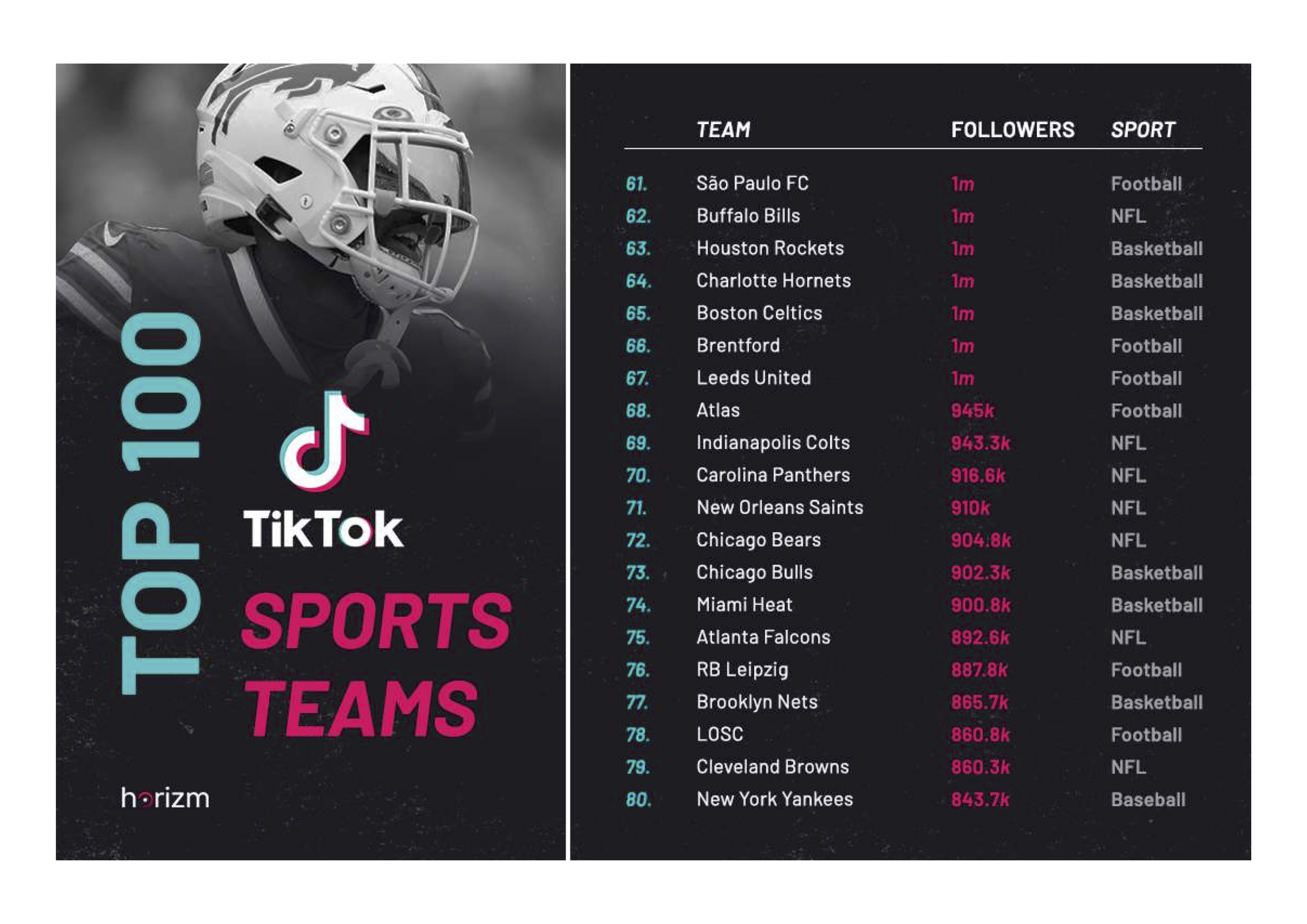 Les 100 clubs sportifs les plus populaires sur TikTok (81 à 100)