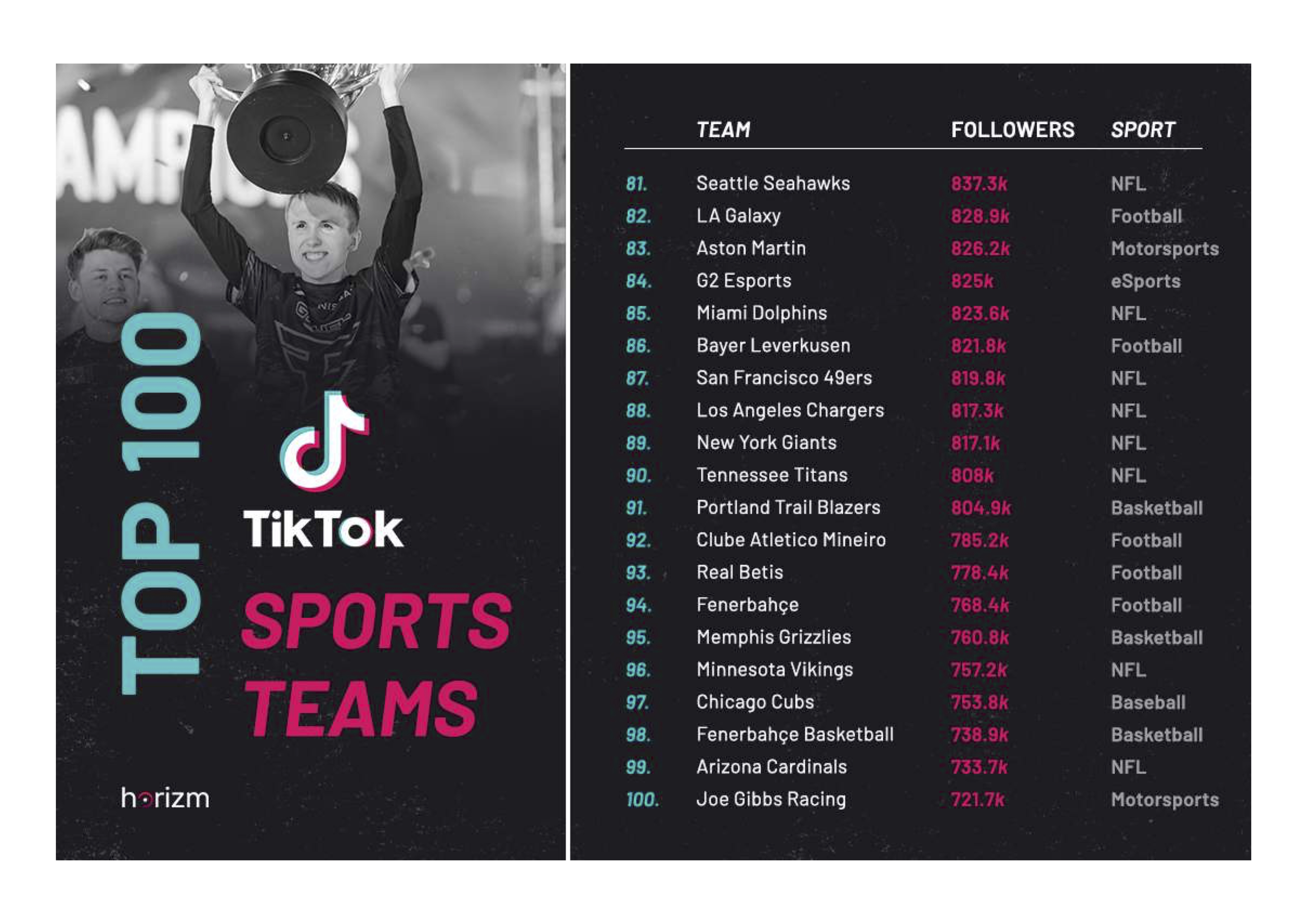 Les 100 clubs sportifs les plus populaires sur TikTok (61 à 80)