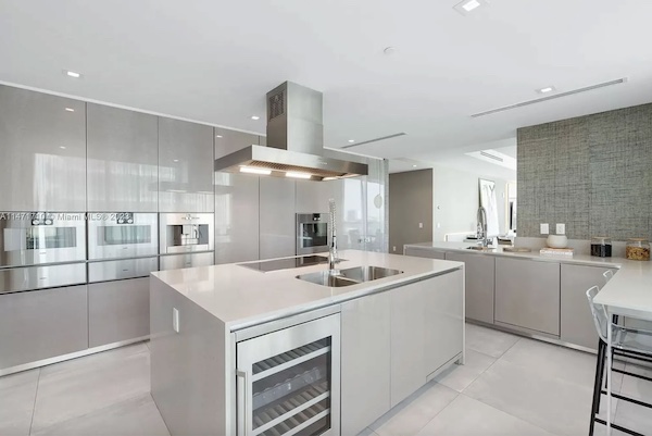 La cuisine moderne est équipée d’appareils électroménagers haut de gamme Gaggenau, d’un four mural, d’un grand îlot de cuisine avec un évier de préparation et un refroidisseur à vin, ainsi que d’un bar à petit-déjeuner séparé. La suite principale, un havre de paix, dispose d’une baignoire à immersion, de salles de bains en marbre, d’une terrasse privée et de vues imprenables sur l’océan qui ajoutent à son charme.