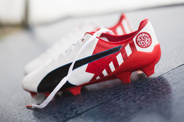 Intitulées « Fever Derby » comme inscrit sur le talon, ces chaussures sont rouge et blanche, comme les couleurs du maillot de son club. La mention « Madrid Derby » y est aussi floqué en rouge sur blanc, sur la pointe des deux crampons. Le modèle que promeut l’attaquant de l’équipe de France de football et des Colchoneros est un Puma evoSPEED, classique, que la marque a personnalisé, en fonction de son athlète et de l’événement sportif. Griezmann a contribué au processus de production de cette paire exclusive, comme souhaité par Puma.