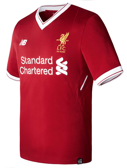 Liverpool et l’équipementier américain New Balance présentent le futur maillot domicile des Reds pour la saison 2017-2018. Cette tunique, fidèle au rouge, signe les 125 ans du club avec l’apparition d’un nouveau blason, pour célébrer cet anniversaire. Les fans apprécieront qu’à cette occasion, le mythique club anglais soit revenu aux fondamentaux avec la présence du blanc sur le logo de l’équipementier américain, sur le sponsor Standard Chartered, ainsi que sur le col.