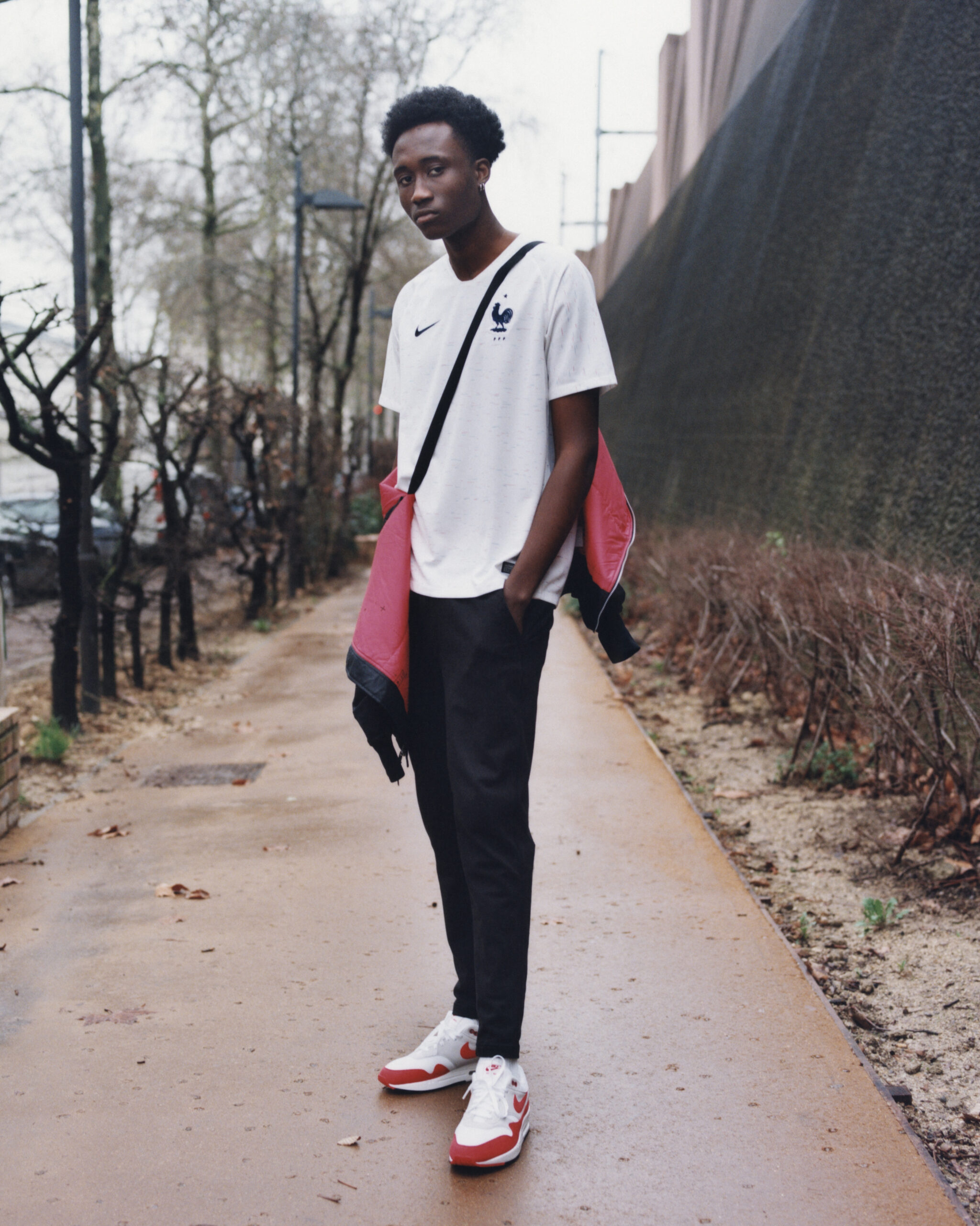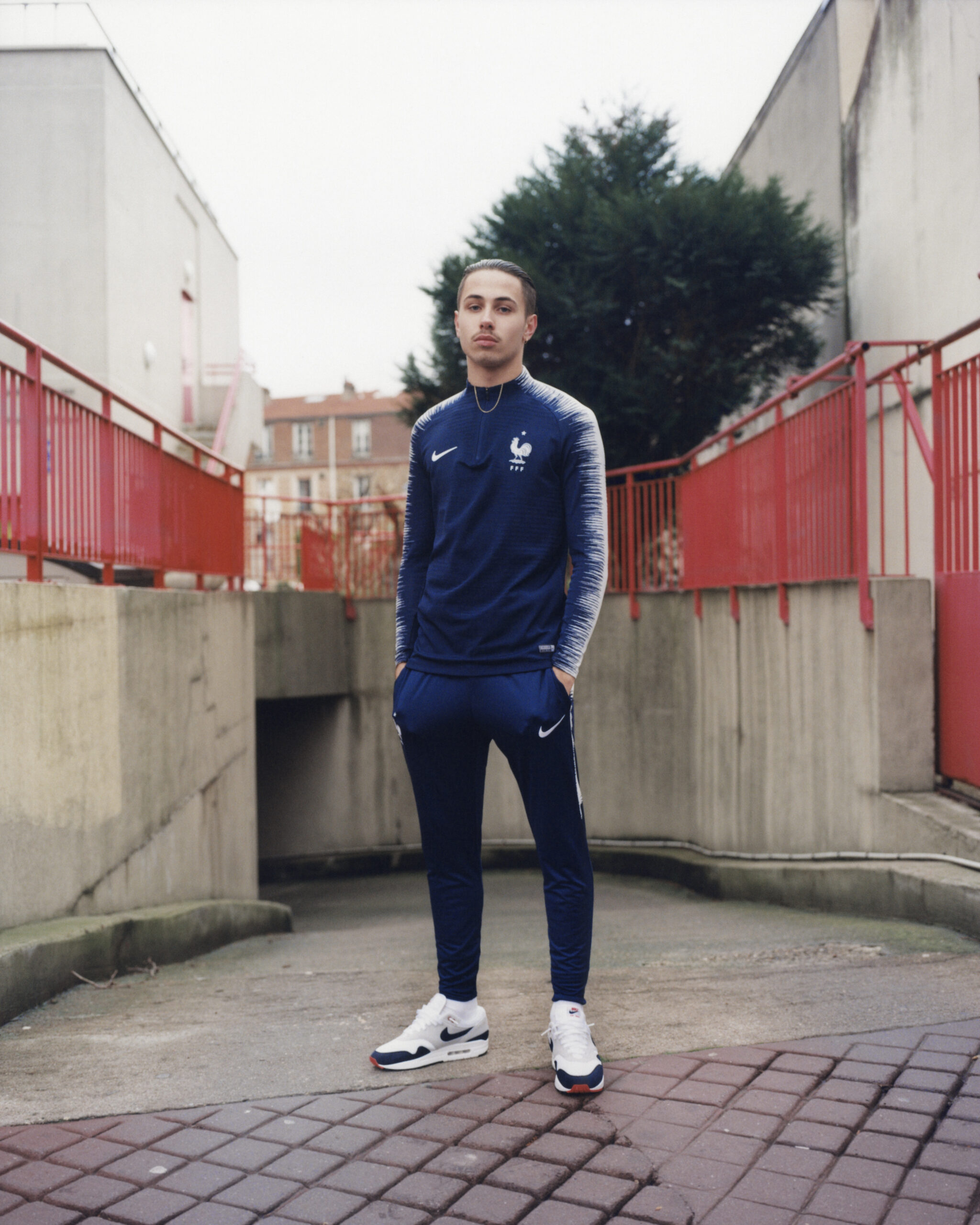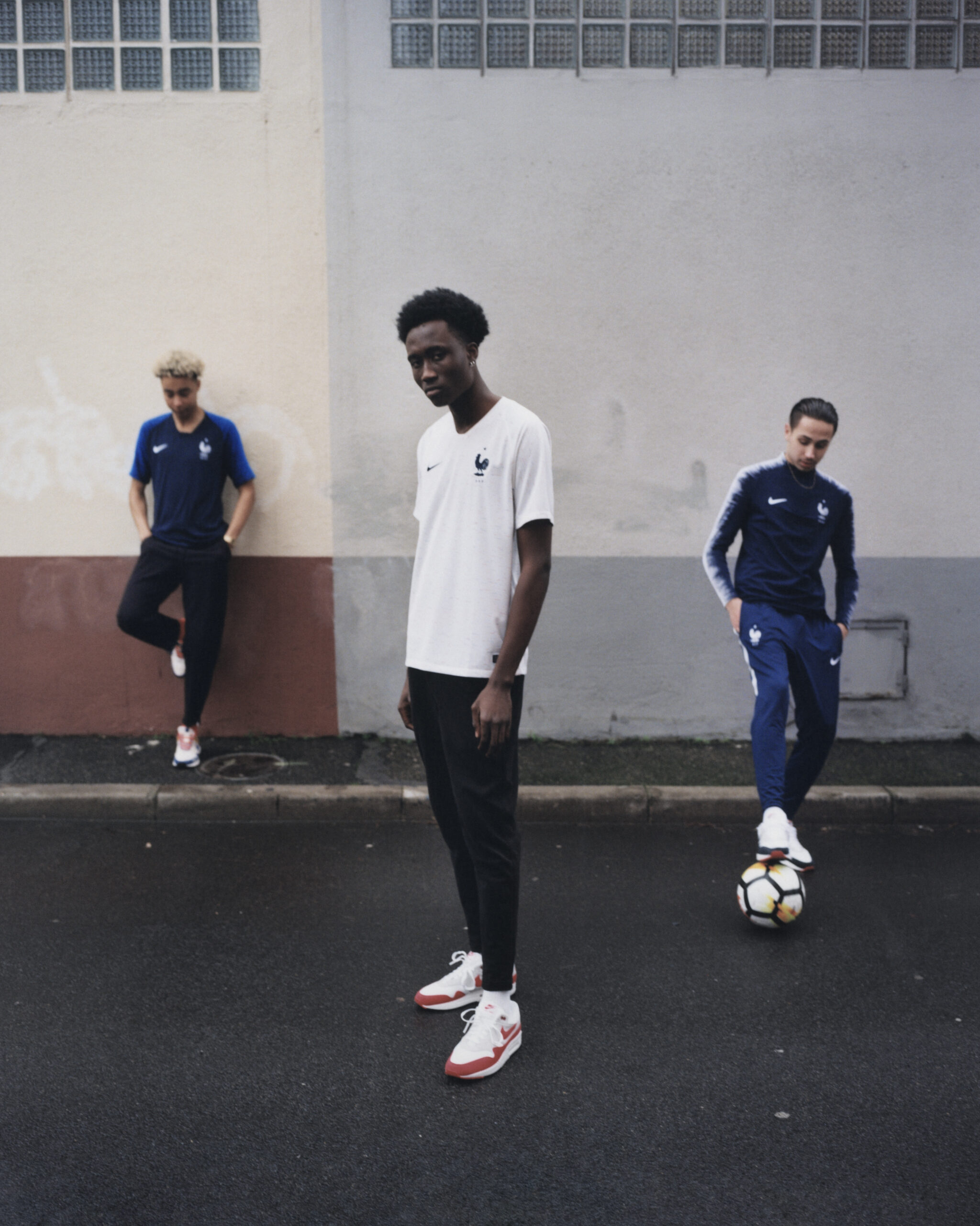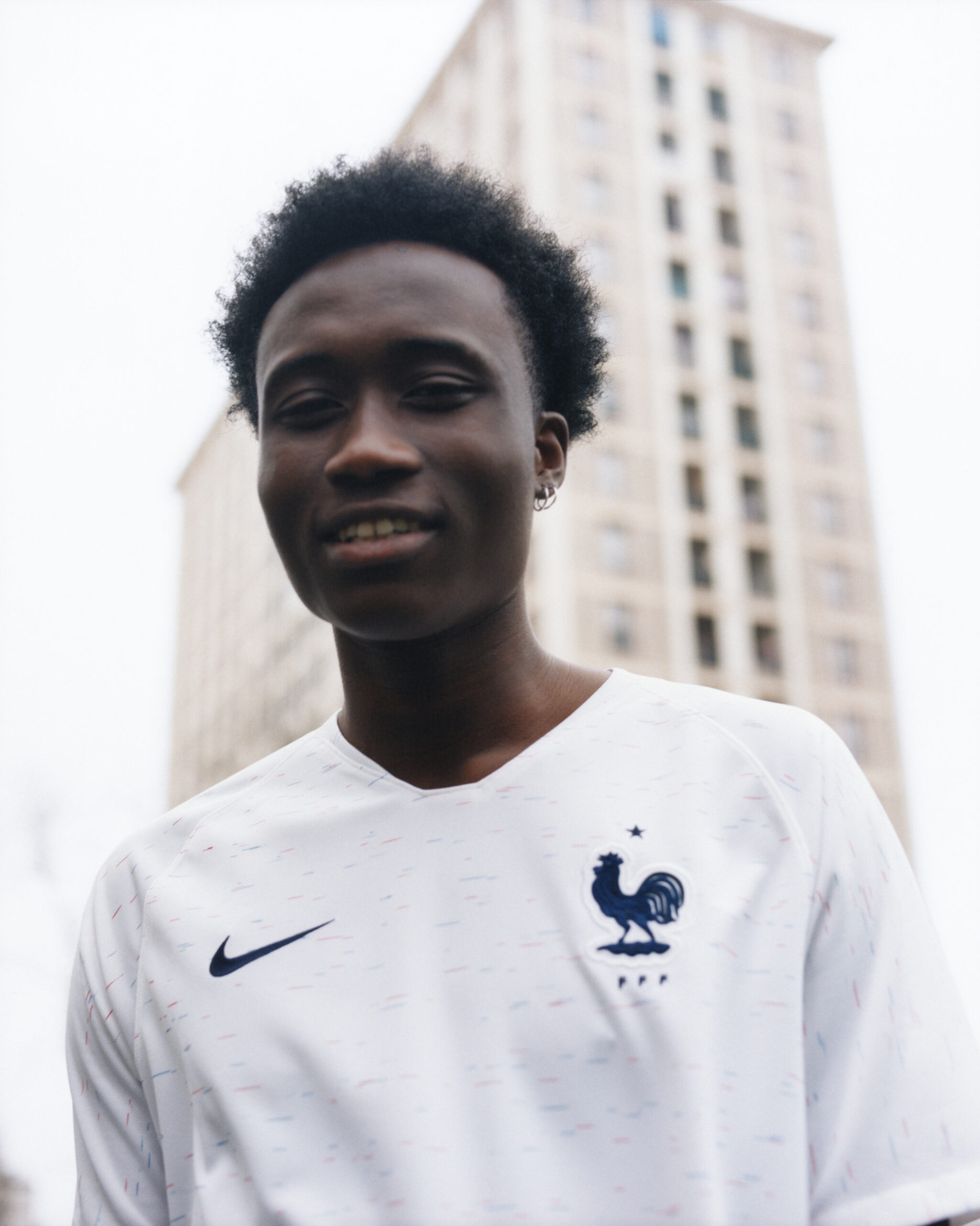 Sakina Karchaoui, défenseur de Montpellier et de l’équipe de France compte elle aussi pour égérie de la marque US. Parce qu’elles n’ont pas de compétition majeure cette année, mais Nike habille aussi les équipes de France féminine. Ici, la joueuse de 22 ans pose avec une marinière, qui servira de tenue d’échauffement des Bleus en Russie.