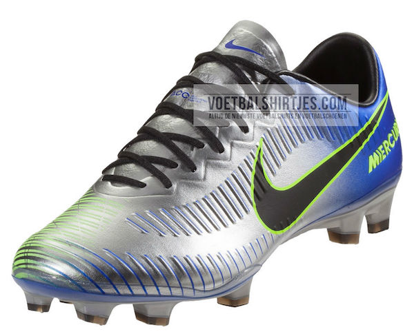 Elles restent dans le même thème que les précédentes, dans la couleur ou la story que donne Nike tout autour. Version « Alegria », « la joie », ces chaussures sont un modèle Mercurial Vapor, sur fond de gris argenté, avec du vert et du bleu iconique de Neymar et de la nation brésilienne. Une spécificité quand même, elles seront un hommage à la première Mercurial produite par Nike, il y a déjà 20 ans, en 1998.