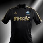 Ca y est, l’OM a son 4e maillot ! Il y a quelques mois, le club marseillais lançait un concours auprès de ses fans pour imaginer le design de cette 4e tunique phocéenne de la saison. Plus de 60 000 modèles proposés plus tard, voici le nouveau maillot de l’Olympique de Marseille ! Une tunique à dominante noire avec des bandes dorées qui rappelle à s’y méprendre le maillot extérieur du Real Madrid de Cristiano Ronaldo et Karim Benzema. On vous laisse en juger par vous même avec les clichés ci-dessous…